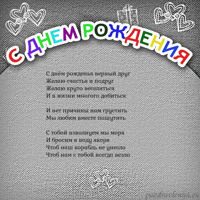 С днём рожденья верный друг Желаю счастья и подруг Желаю