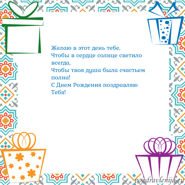 Желаю в этот день тебе, Чтобы в сердце солнце светило всегда