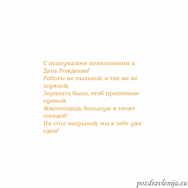 С наилучшими пожеланиями в День Рождения! Работы не пыльной,