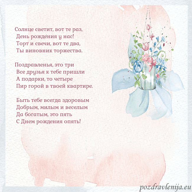 Прекрасно, когда для виновника торжества гости подбирают душевные и лично ему адресованные поздравления. В наш век технологий всё чаще близкие и друзья поздравления с днем рождения отправляют SMS-сообщением, по электронной почте или пожеланием в социальных сетях. Те бумажные открытки, которые еще совсем недавно мы отправляли по почте, все чаще заменяют открытки, высылаемые по почте электронной. Выбор открытки или поздравления ко дню рождения зависит от именинника, его возраста, увлечений, мечты.Для молодежи, детей, очень близких приятелей подходят смешные, юмористические поздравления, для более солидных, зрелых юбилеев поздравления подбираются более серьезные, с глубоким смыслом. В зависимости от случая может быть достаточно короткого поздравительного текста с искренним пожеланием, предназначенным для конкретного человека, иногда более подходящим бывает стихотворное поздравление. Поздравительные тексты, которые предназначаются для любимого человека, могут быть сексуальными, с эротическими намёками.Для поздравления детей подходят веселые четверостишия. Взрослые дети, поздравляя своих мам, чаще всего благодарят их за то, что мама их вырастила, заботилась о них, желают маме, чтобы та нашла время для отдыха и для себя. В основном, чем ближе человек, которого поздравляем, тем более личным бывает поздравление. В текстах поздравлений по случаю юбилеев часто упоминается количество прожитых именинником лет, делается акцент на достижениях юбиляра.Наверное, не зря существует поверье, что сказанные на дне рождения искренние, индивидуальные пожелания сбываются. Поэтому пожелание, предназначенное для коллеги, скорей всего не подойдет для поздравления мамы, отца или бабушки, а поздравляя друга или ребенка, мы скорей всего подберем совершенно другие слова, нежели для поздравления любимого.