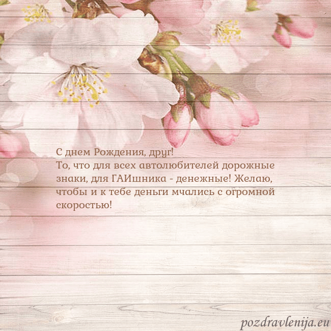 То, что для всех автолюбителей дорожные знаки, для ГАИшника - денежные! Желаю, чтобы и к тебе деньги мчались с огромной скоростью!