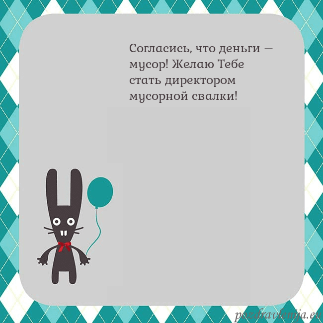 Согласись, что деньги – мусор! Желаю Тебе стать директором мусорной свалки!