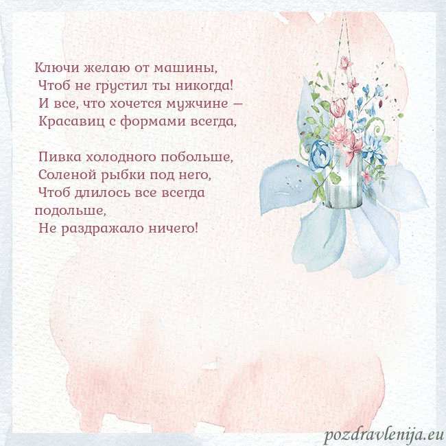 Ключи желаю от машины, Чтоб не грустил ты никогда! И все,