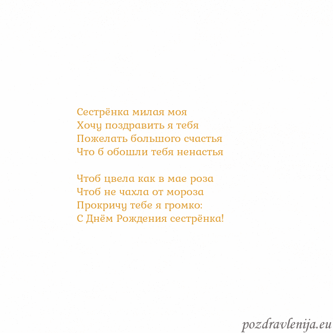 Сестрёнка милая моя Хочу поздравить я тебя Пожелать большого