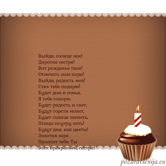 Выйди, солнце мое! Дорогая сестра! Вот рожденье