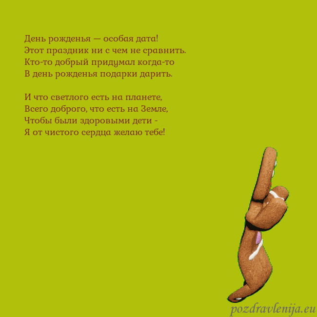 Прекрасно, когда для виновника торжества гости подбирают душевные и лично ему адресованные поздравления. В наш век технологий всё чаще близкие и друзья поздравления с днем рождения отправляют SMS-сообщением, по электронной почте или пожеланием в социальных сетях. Те бумажные открытки, которые еще совсем недавно мы отправляли по почте, все чаще заменяют открытки, высылаемые по почте электронной. Выбор открытки или поздравления ко дню рождения зависит от именинника, его возраста, увлечений, мечты.Для молодежи, детей, очень близких приятелей подходят смешные, юмористические поздравления, для более солидных, зрелых юбилеев поздравления подбираются более серьезные, с глубоким смыслом. В зависимости от случая может быть достаточно короткого поздравительного текста с искренним пожеланием, предназначенным для конкретного человека, иногда более подходящим бывает стихотворное поздравление. Поздравительные тексты, которые предназначаются для любимого человека, могут быть сексуальными, с эротическими намёками.Для поздравления детей подходят веселые четверостишия. Взрослые дети, поздравляя своих мам, чаще всего благодарят их за то, что мама их вырастила, заботилась о них, желают маме, чтобы та нашла время для отдыха и для себя. В основном, чем ближе человек, которого поздравляем, тем более личным бывает поздравление. В текстах поздравлений по случаю юбилеев часто упоминается количество прожитых именинником лет, делается акцент на достижениях юбиляра.Наверное, не зря существует поверье, что сказанные на дне рождения искренние, индивидуальные пожелания сбываются. Поэтому пожелание, предназначенное для коллеги, скорей всего не подойдет для поздравления мамы, отца или бабушки, а поздравляя друга или ребенка, мы скорей всего подберем совершенно другие слова, нежели для поздравления любимого.