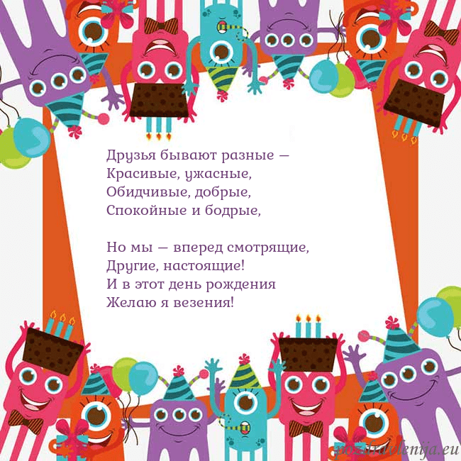 Прекрасно, когда для виновника торжества гости подбирают душевные и лично ему адресованные поздравления. В наш век технологий всё чаще близкие и друзья поздравления с днем рождения отправляют SMS-сообщением, по электронной почте или пожеланием в социальных сетях. Те бумажные открытки, которые еще совсем недавно мы отправляли по почте, все чаще заменяют открытки, высылаемые по почте электронной. Выбор открытки или поздравления ко дню рождения зависит от именинника, его возраста, увлечений, мечты.Для молодежи, детей, очень близких приятелей подходят смешные, юмористические поздравления, для более солидных, зрелых юбилеев поздравления подбираются более серьезные, с глубоким смыслом. В зависимости от случая может быть достаточно короткого поздравительного текста с искренним пожеланием, предназначенным для конкретного человека, иногда более подходящим бывает стихотворное поздравление. Поздравительные тексты, которые предназначаются для любимого человека, могут быть сексуальными, с эротическими намёками.Для поздравления детей подходят веселые четверостишия. Взрослые дети, поздравляя своих мам, чаще всего благодарят их за то, что мама их вырастила, заботилась о них, желают маме, чтобы та нашла время для отдыха и для себя. В основном, чем ближе человек, которого поздравляем, тем более личным бывает поздравление. В текстах поздравлений по случаю юбилеев часто упоминается количество прожитых именинником лет, делается акцент на достижениях юбиляра.Наверное, не зря существует поверье, что сказанные на дне рождения искренние, индивидуальные пожелания сбываются. Поэтому пожелание, предназначенное для коллеги, скорей всего не подойдет для поздравления мамы, отца или бабушки, а поздравляя друга или ребенка, мы скорей всего подберем совершенно другие слова, нежели для поздравления любимого.