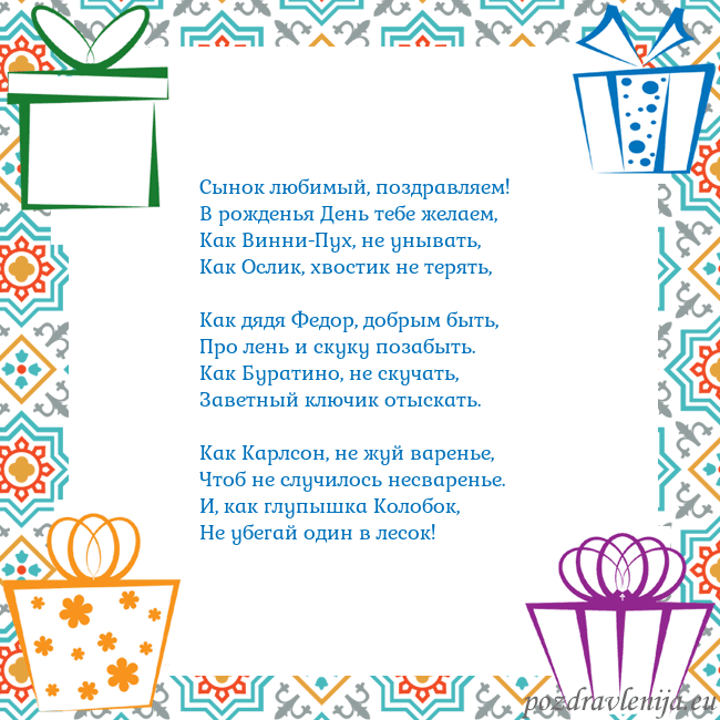 Сынок любимый, поздравляем! В рожденья День тебе желаем, Как