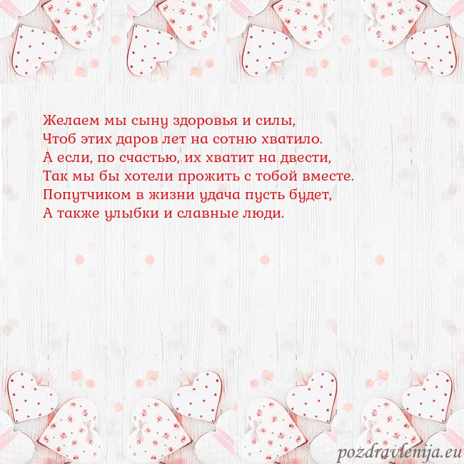 Желаем мы сыну здоровья и силы, Чтоб этих даров лет на сотню