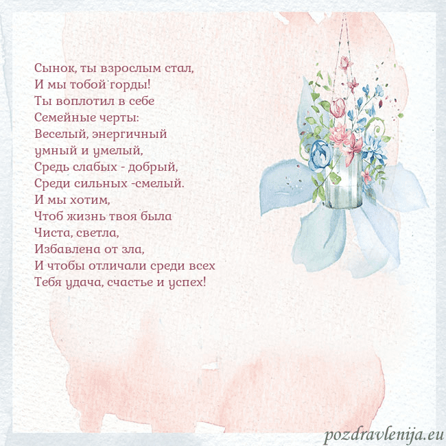 Сынок, ты взрослым стал, И мы тобой горды! Ты воплотил в