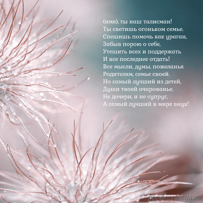 (имя), ты наш талисман! Ты светишь огоньком семье. Спешишь