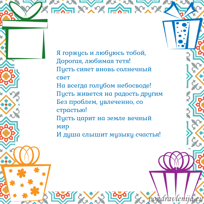 Я горжусь и любуюсь тобой, Дорогая, любимая тетя! Пусть