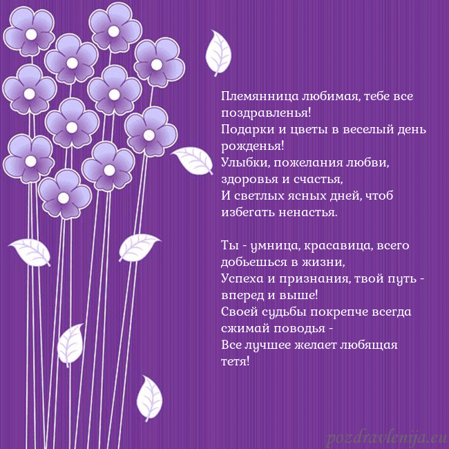 Племянница любимая, тебе все поздравленья! Подарки и цветы в