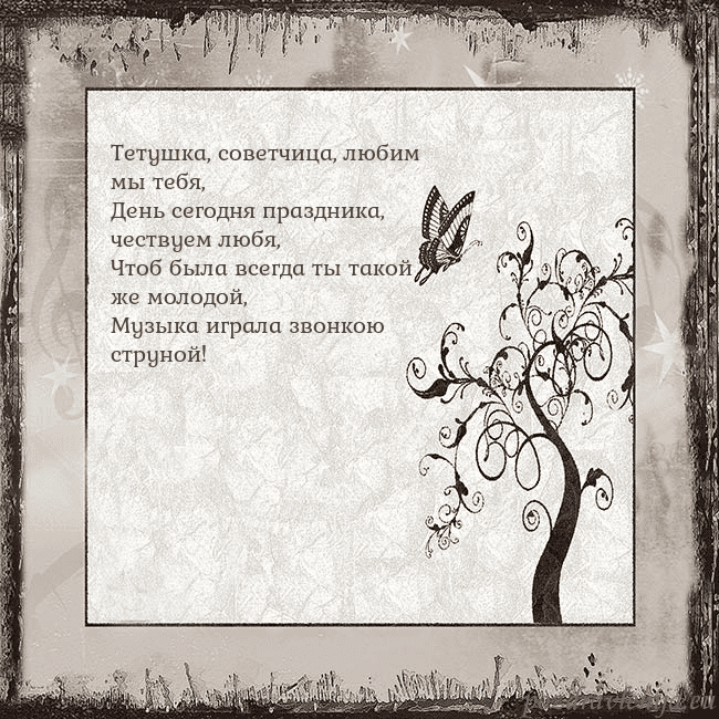 Тетушка, советчица, любим мы тебя, День сегодня праздника,