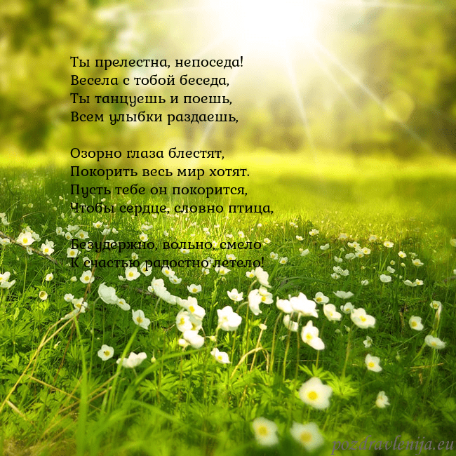 Ты прелестна, непоседа! Весела с тобой беседа, Ты танцуешь и
