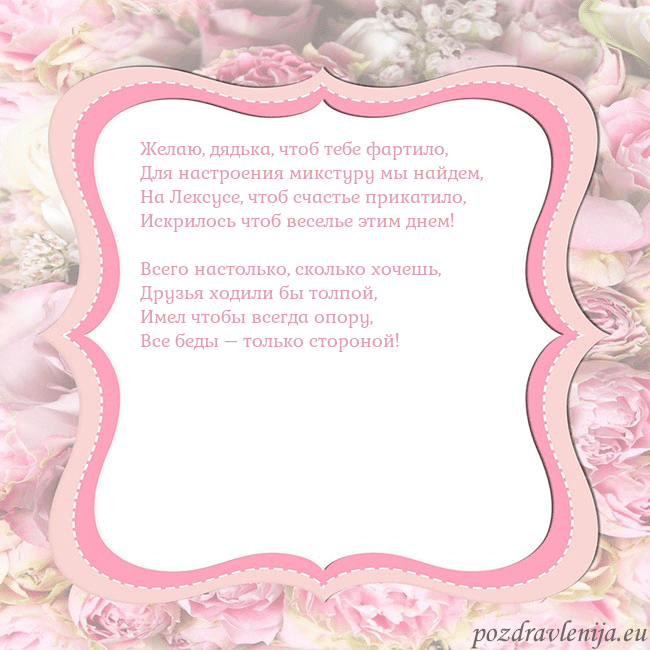 Желаю, дядька, чтоб тебе фартило, Для настроения микстуру мы