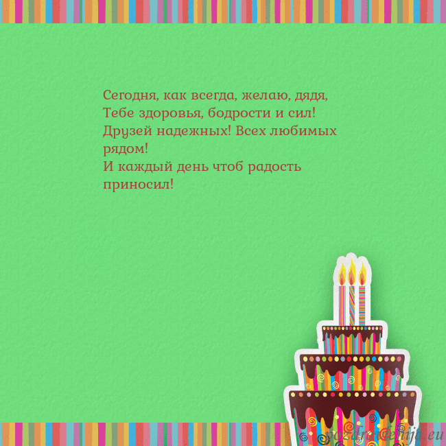 Сегодня, как всегда, желаю, дядя, Тебе здоровья, бодрости и