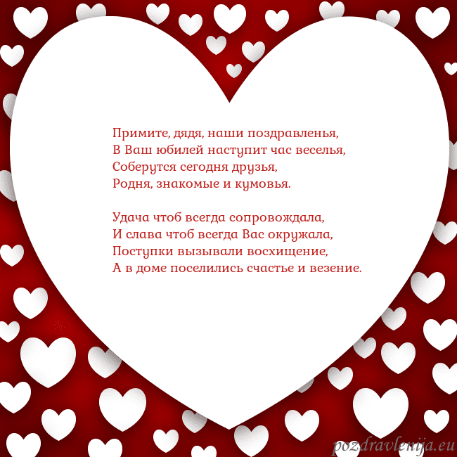Примите, дядя, наши поздравленья, В Ваш юбилей наступит час