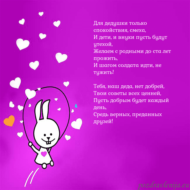 Для дедушки только спокойствия, смеха, И дети, и внуки пусть