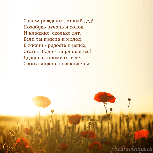 С днем рожденья, милый дед! Позабудь печаль и холод. И
