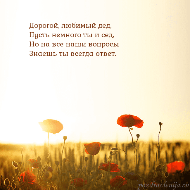 Дорогой, любимый дед, Пусть немного ты и сед, Но на все наши