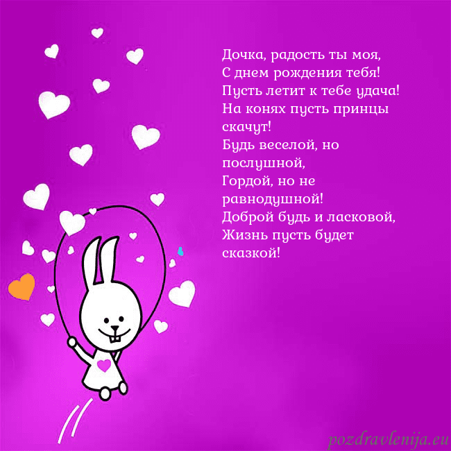 Дочка, радость ты моя, С днем рождения тебя! Пусть летит к