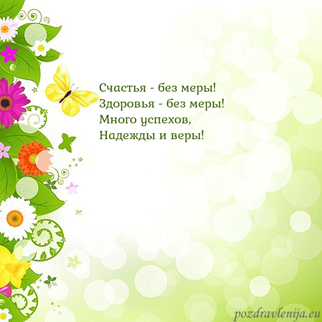 Счастья - без меpы! Здоpовья - без меpы! Много успехов,
