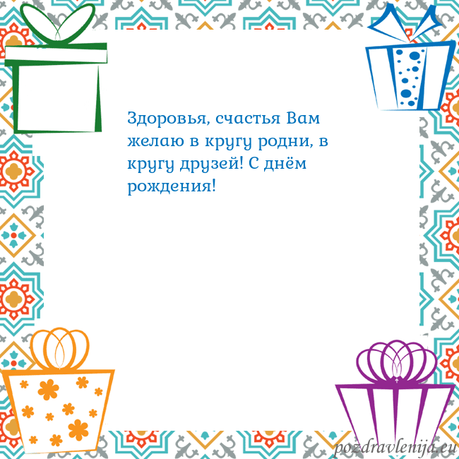 Здоровья, счастья Вам желаю в кругу родни, в кругу друзей! С