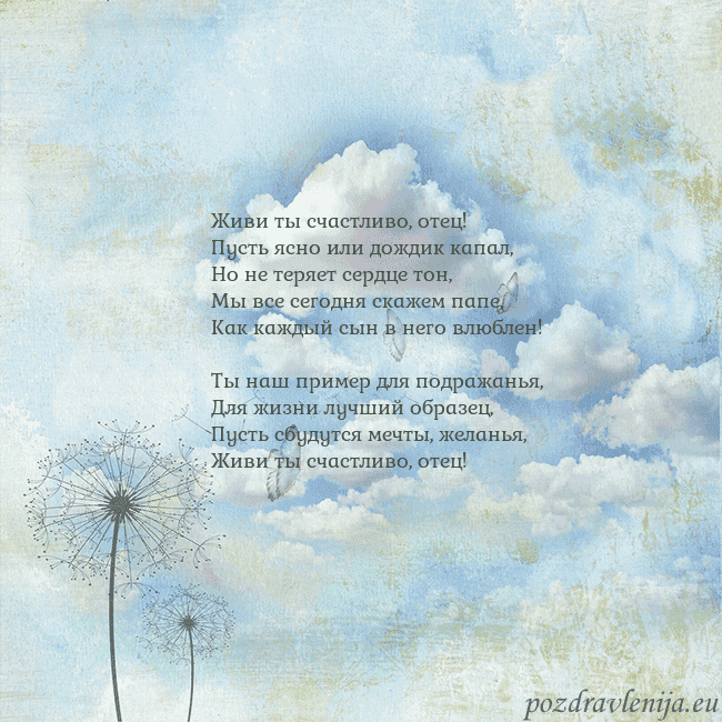 Живи ты счастливо, отец! Пусть ясно или дождик капал, Но не