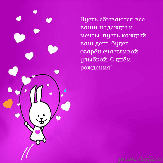 Пусть сбываются все ваши надежды и мечты, пусть каждый ваш день будет озарён счастливой улыбкой. С днём рождения!