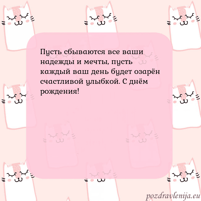 Пусть сбываются все ваши надежды и мечты, пусть каждый ваш день будет озарён счастливой улыбкой. С днём рождения!
