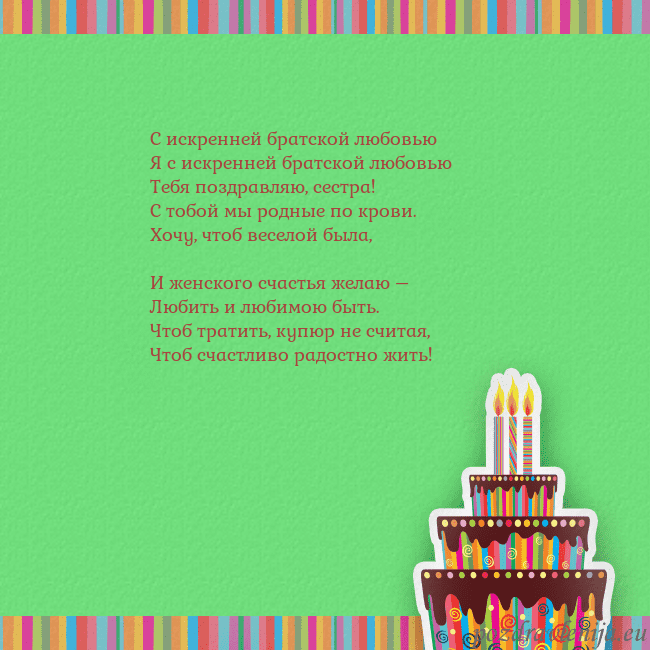 Тебя поздравляю, сестра!