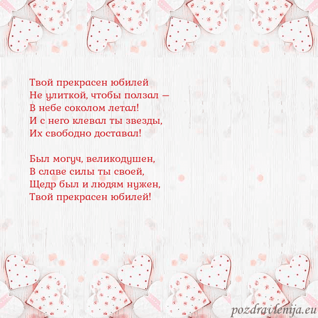Твой прекрасен юбилей Не улиткой, чтобы ползал – В небе