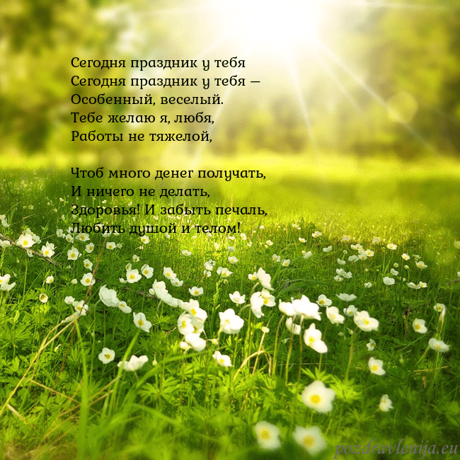 Прекрасно, когда для виновника торжества гости подбирают душевные и лично ему адресованные поздравления. В наш век технологий всё чаще близкие и друзья поздравления с днем рождения отправляют SMS-сообщением, по электронной почте или пожеланием в социальных сетях. Те бумажные открытки, которые еще совсем недавно мы отправляли по почте, все чаще заменяют открытки, высылаемые по почте электронной. Выбор открытки или поздравления ко дню рождения зависит от именинника, его возраста, увлечений, мечты.Для молодежи, детей, очень близких приятелей подходят смешные, юмористические поздравления, для более солидных, зрелых юбилеев поздравления подбираются более серьезные, с глубоким смыслом. В зависимости от случая может быть достаточно короткого поздравительного текста с искренним пожеланием, предназначенным для конкретного человека, иногда более подходящим бывает стихотворное поздравление. Поздравительные тексты, которые предназначаются для любимого человека, могут быть сексуальными, с эротическими намёками.Для поздравления детей подходят веселые четверостишия. Взрослые дети, поздравляя своих мам, чаще всего благодарят их за то, что мама их вырастила, заботилась о них, желают маме, чтобы та нашла время для отдыха и для себя. В основном, чем ближе человек, которого поздравляем, тем более личным бывает поздравление. В текстах поздравлений по случаю юбилеев часто упоминается количество прожитых именинником лет, делается акцент на достижениях юбиляра.Наверное, не зря существует поверье, что сказанные на дне рождения искренние, индивидуальные пожелания сбываются. Поэтому пожелание, предназначенное для коллеги, скорей всего не подойдет для поздравления мамы, отца или бабушки, а поздравляя друга или ребенка, мы скорей всего подберем совершенно другие слова, нежели для поздравления любимого.