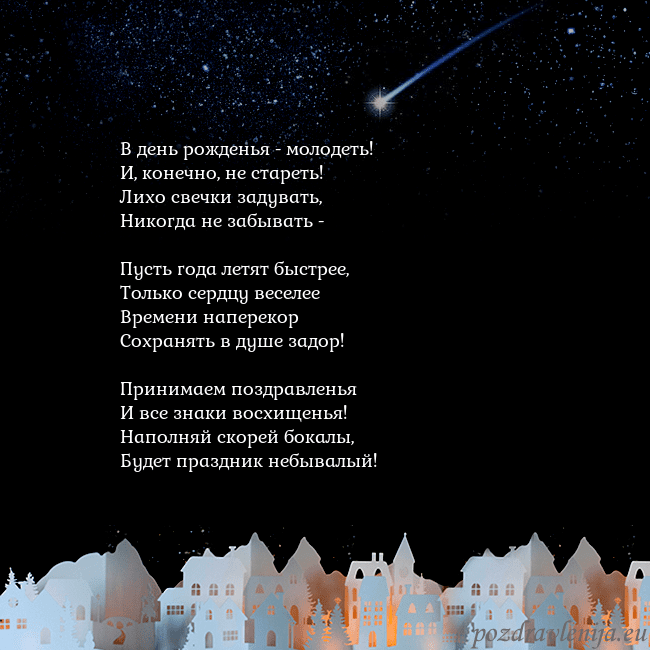 В день рожденья - молодеть! И, конечно, не стареть! Лихо