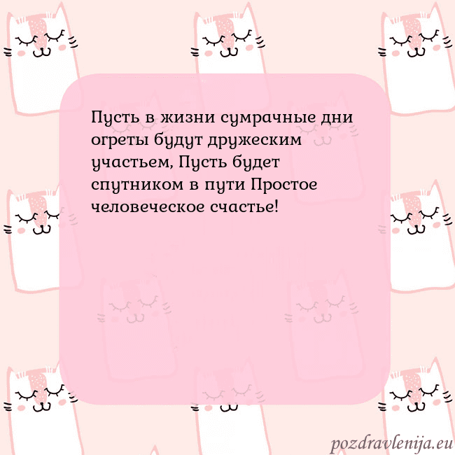 Пусть в жизни сумрачные дни огреты будут дружеским участьем, Пусть будет спутником в пути Простое человеческое счастье!