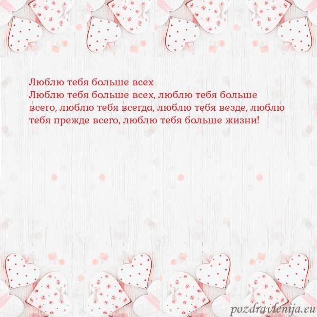 Люблю тебя больше всех, люблю тебя больше всего, люблю тебя всегда, люблю тебя везде, люблю тебя прежде всего, люблю тебя больше жизни!