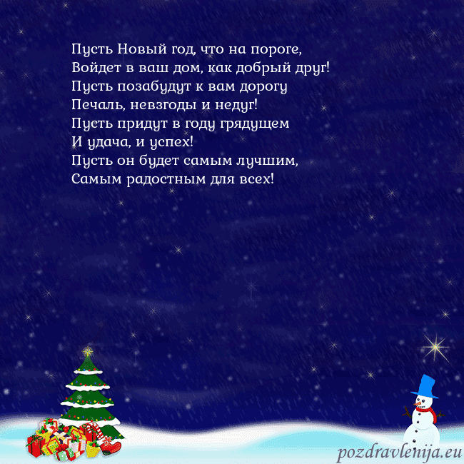 Пусть Новый год, что на пороге, Войдет в ваш дом, как добрый