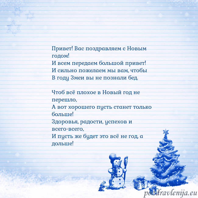 Привет! Вас поздравляем с Новым годом! И всем передаем