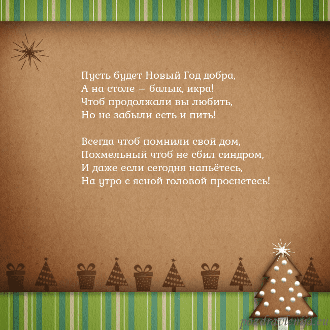 Пусть будет Новый Год добра, А на столе – балык, икра! Чтоб