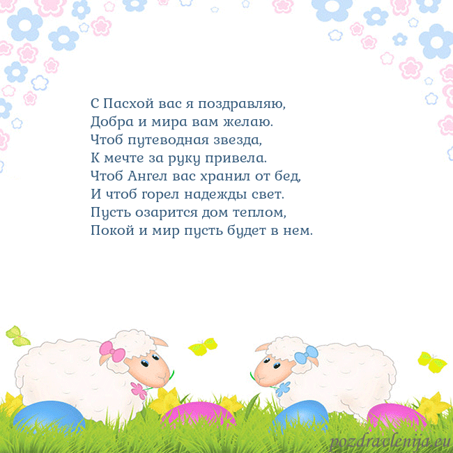 С Пасхой вас я поздравляю, Добра и мира вам желаю. Чтоб