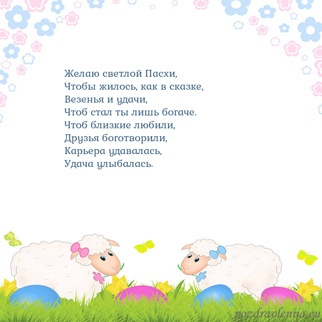 Желаю светлой Пасхи, Чтобы жилось, как в сказке, Везенья и